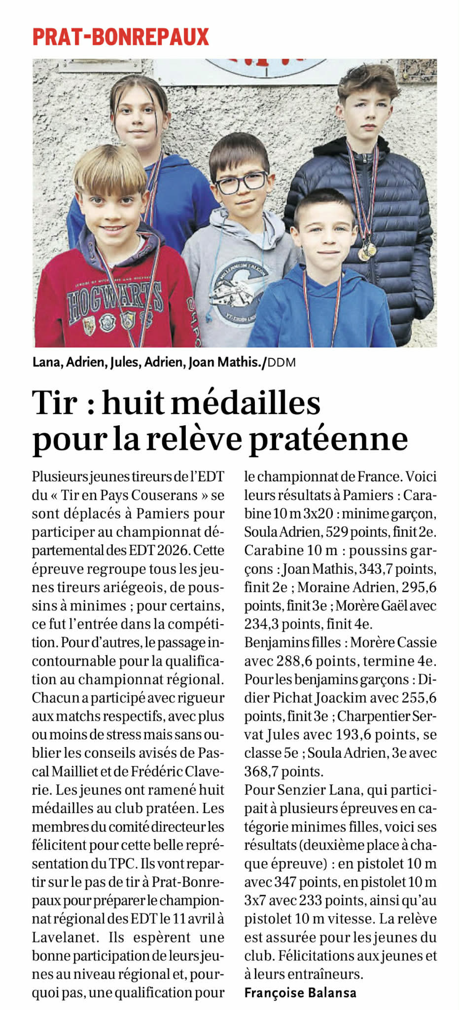 Le championnat départemental des EDT a eu lieu à Pamiers le dimanche 8 mars 2026. Nos jeunes tireurs se sont déplacés sur le pas de tir du club de Pamiers pour participer aux différentes épreuves de ce championnat. Voici les résultats : CARABINE 10 METRES 3×20 * Minimes Garçon : – Soula Adrien totalise 529 … Lire la suite