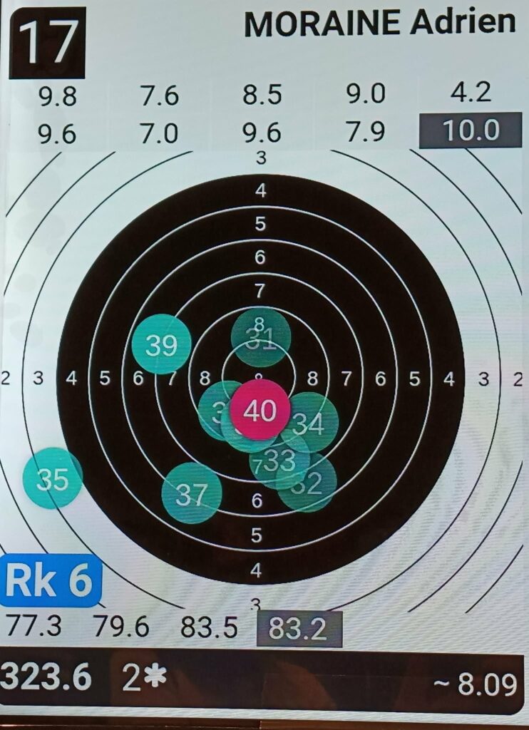 – Moraine Adrien totalise 323.6 points et se classe 11ème.