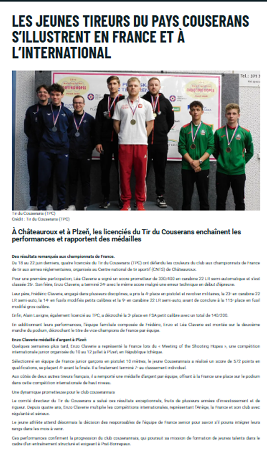 Le premier regroupement du « collectif jeunes de la Ligue Midi-Pyrénées de tir » a eu lieu ce weekend des 13 et 14 septembre 2025 au club de Saint-Gaudens. Léa Claverie est donc repartie avec le groupe pour son premier stage avec le collectif. Un grand groupe de jeunes tireurs cette année au sein du collectif. Ce … Lire la suite